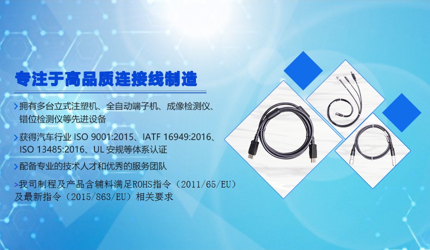 行業(yè)應(yīng)用東莞市正英電子科技有限公司前身深圳市三誠(chéng)電子有限公司,成立于1998年,是一家專(zhuān)業(yè)生產(chǎn)醫(yī)療設(shè)備線(xiàn)、液晶顯示屏精密連接線(xiàn)和工業(yè)設(shè)備特殊用途連接線(xiàn)的專(zhuān)業(yè)廠(chǎng)家,產(chǎn)品廣泛應(yīng)用于醫(yī)療設(shè)備、工業(yè)自控、液晶電視、顯示屏、汽車(chē)、民用電器等行業(yè)。